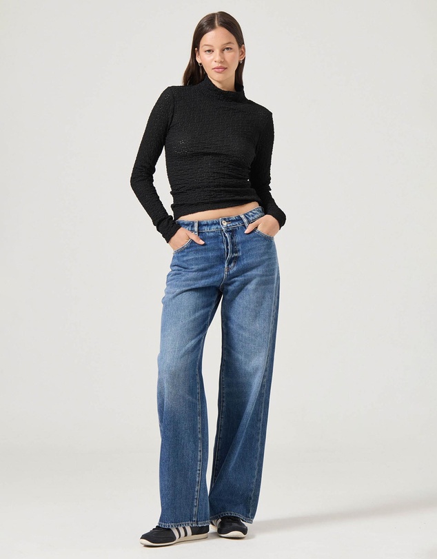Nobody Denim’s must-have baggy jean. The Sasha Jean sits just below the navel, is relaxed throughout, following a wide, straight leg profile falling over the shoe. Featuring button fly and narrow belt detail. Crafted from premium rigid denim.