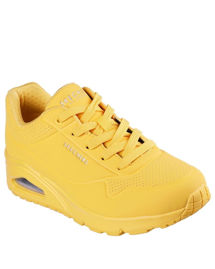 Level up your sneaker game with cushioned comfort wearing Skechers Street™ UNO Lite – Lite Work. This lace-up fashion sneaker features a synthetic duraleather upper with a platform wedge cushioned midsole and a cushioned Skechers Memory Foam™ insole.